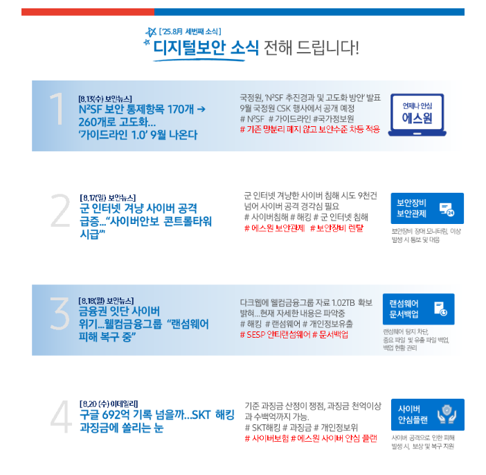 25년 8월 3번째 디저털보안 소식