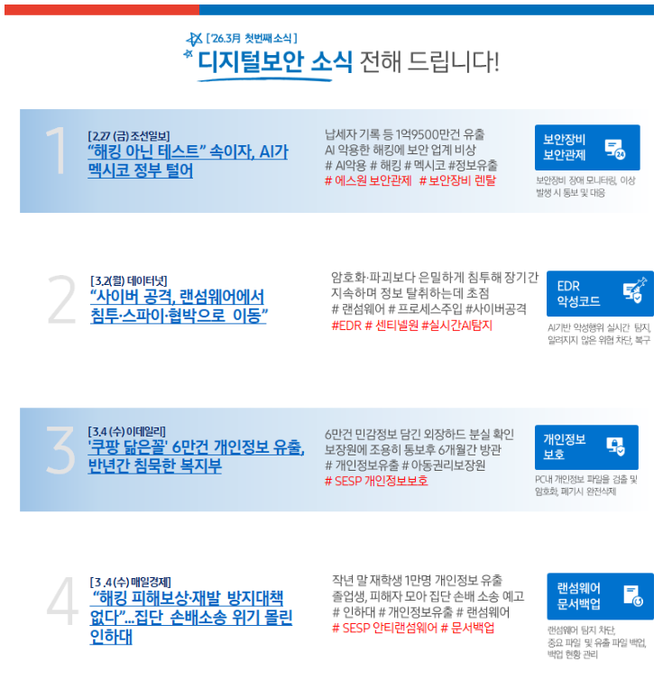 26년 3월 1번째 디지털보안 소식